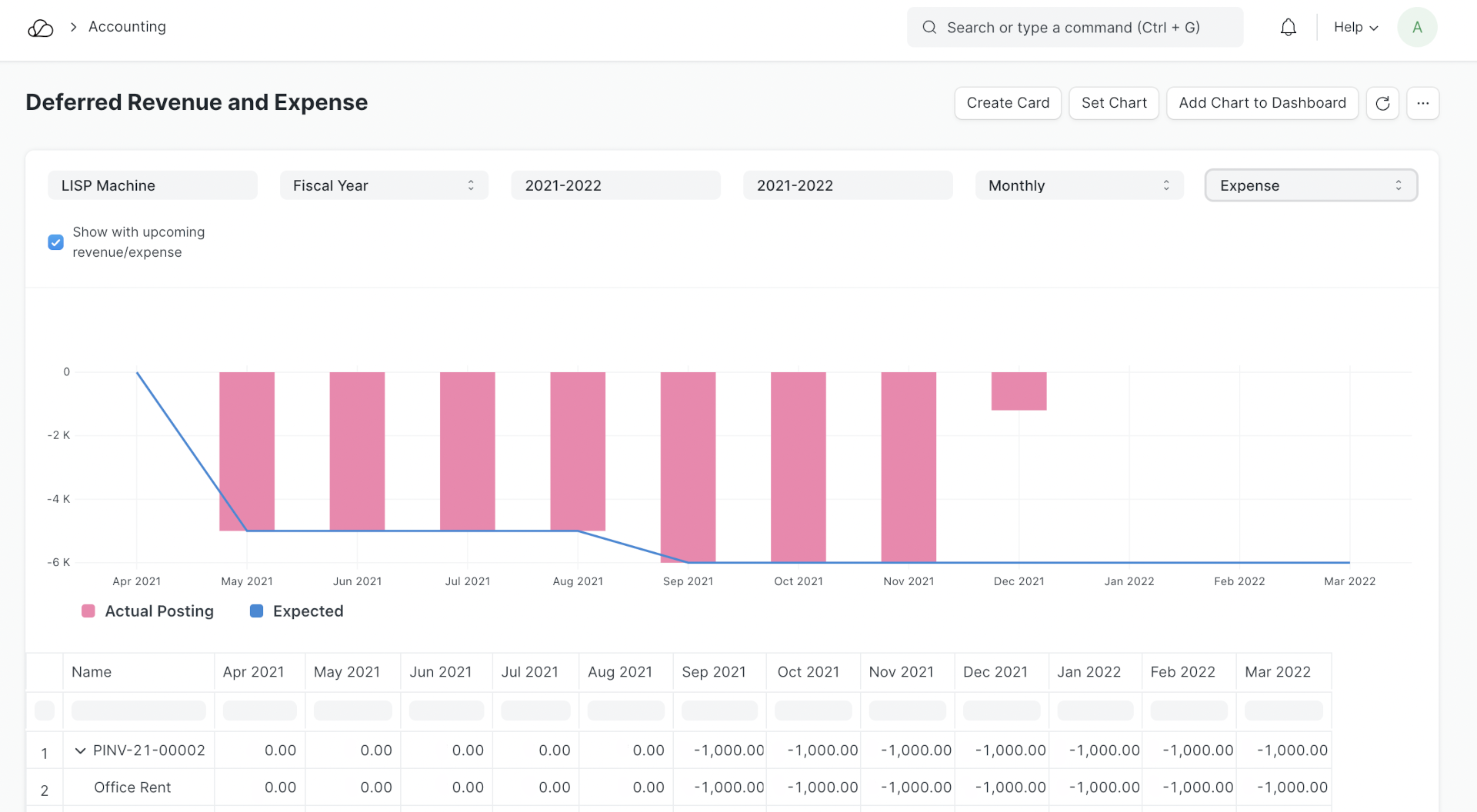 报表可以计算项目和发票级别的延期项目的实际和预期/即将过帐。