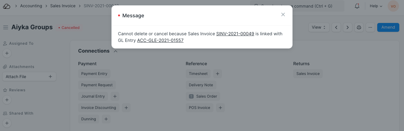 删除采购收据、采购发票、销售发票、送货单和库存分类帐条目等交易条目时,会弹出以下消息: