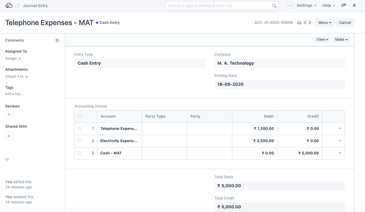 小额现金是手头的少量现金,用于支付旅行、电话等费用,但金额太小,不值得写支票。您可以通过日记帐分录将此类条目记入 OneOfficeERP。