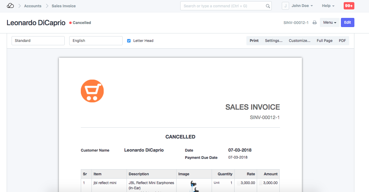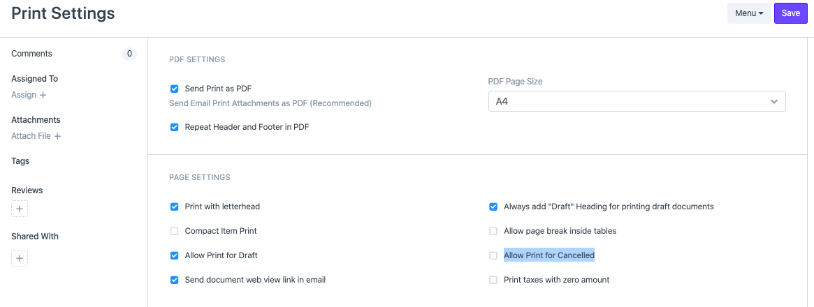 打印设置 中,有一个复选框允许打印已取消的发票。