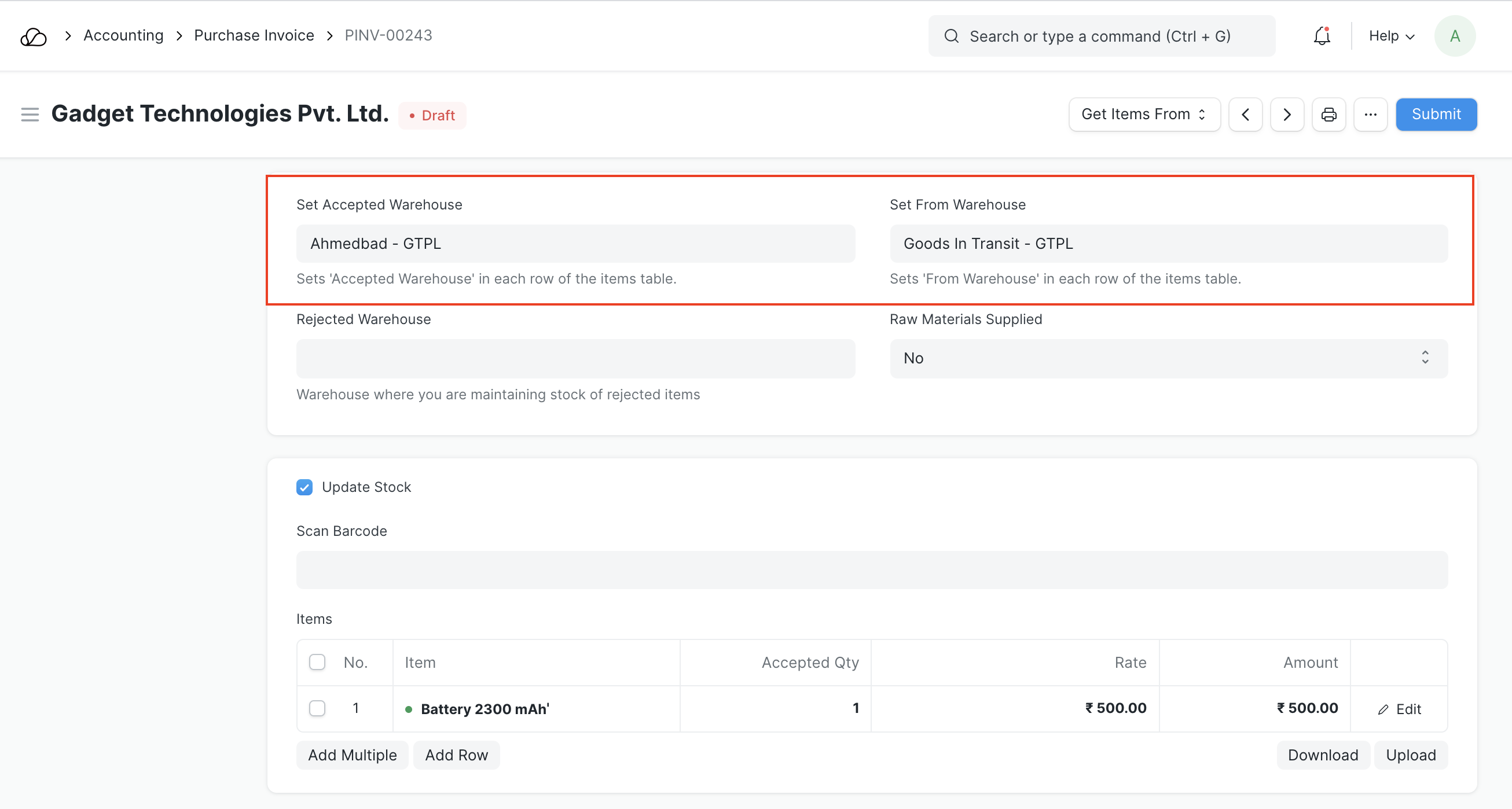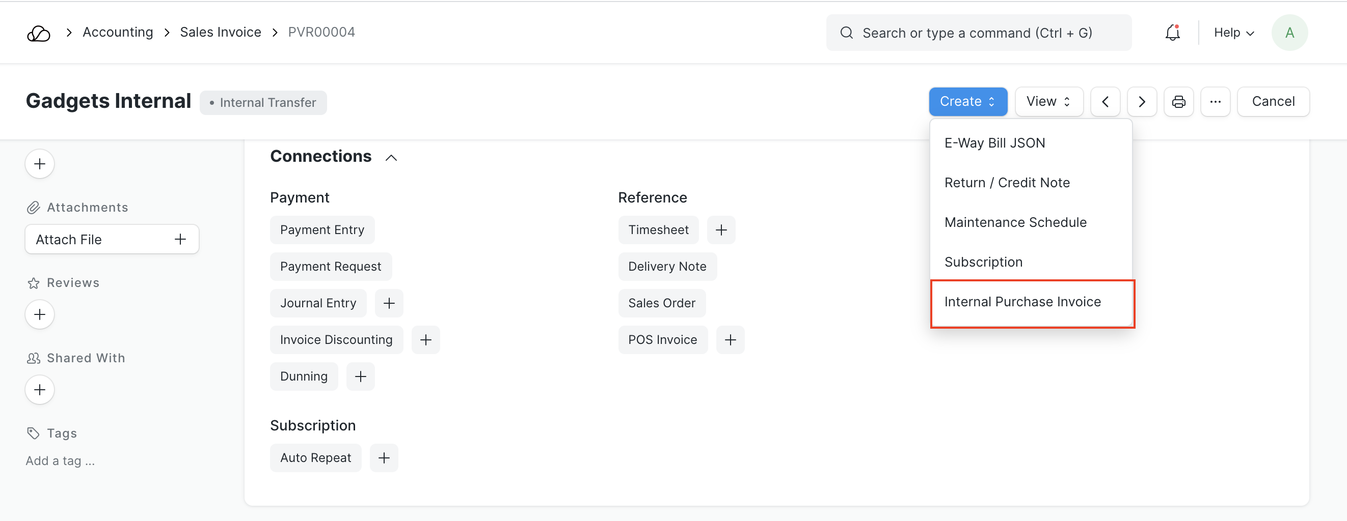 在某些情况下,有法定要求对每次材料转让征收税款。在销售发票等事务中管理它比在库存条目中更容易管理。请按照以下步骤使用销售和采购发票将物料从一个分支机构转移到另一个分支机构