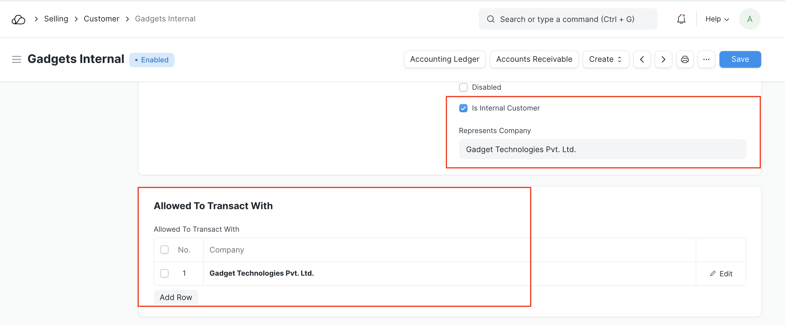 第 2 步 - 创建内部客户和供应商并允许他们与同一家公司进行交易。另外,将适当的地址和商品及服务税详细信息与相关方联系起来