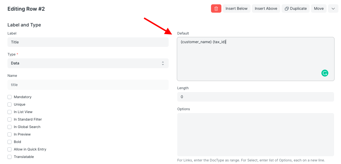 3.如果你想添加更多内容, 4. 在字段的默认中添加字段链接,格式为**{field_name}**