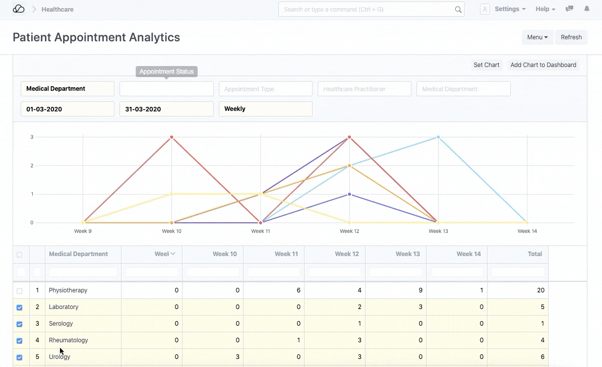 您可以使用左侧的复选框来选择您想要在图表中看到的行:
