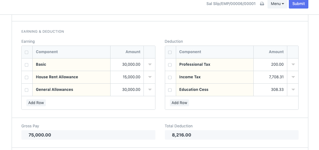 • 创建工资单条目并生成工资单。所得税将与教育税一起自动计算。附截图: