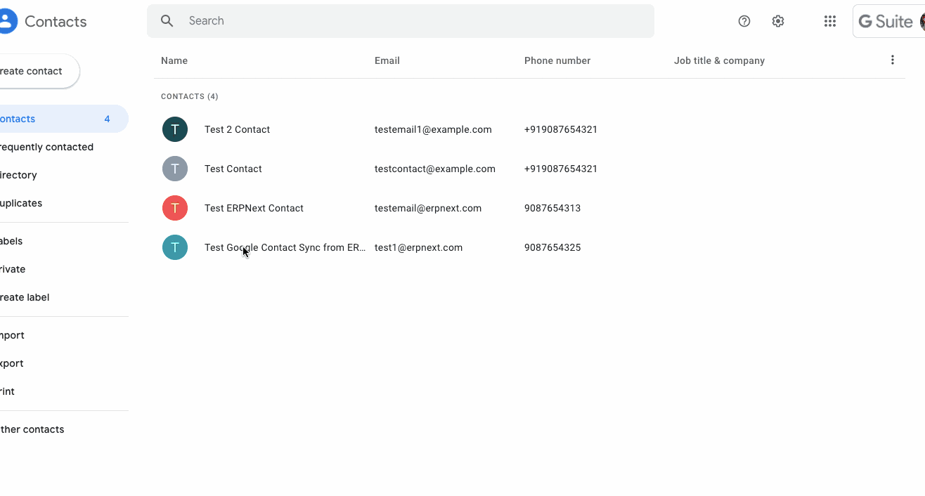 它将显示在 Google 通讯录中: