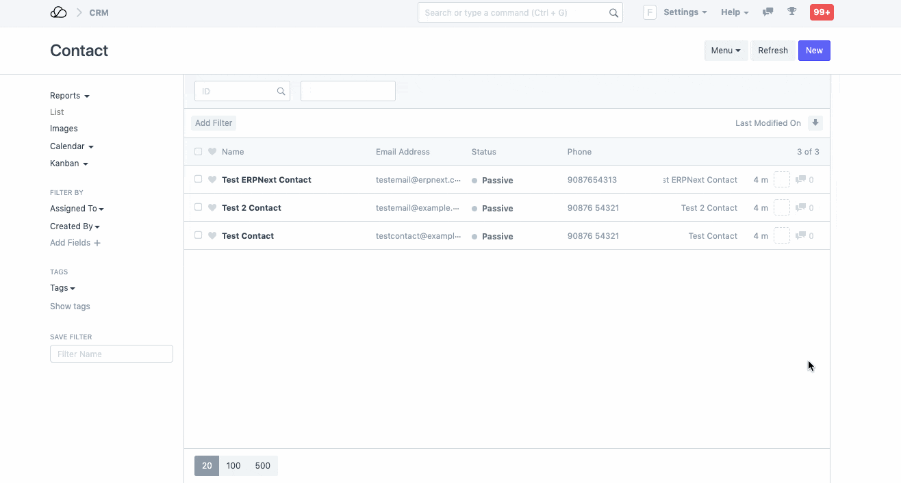 在 OneOfficeERP 中创建联系人: