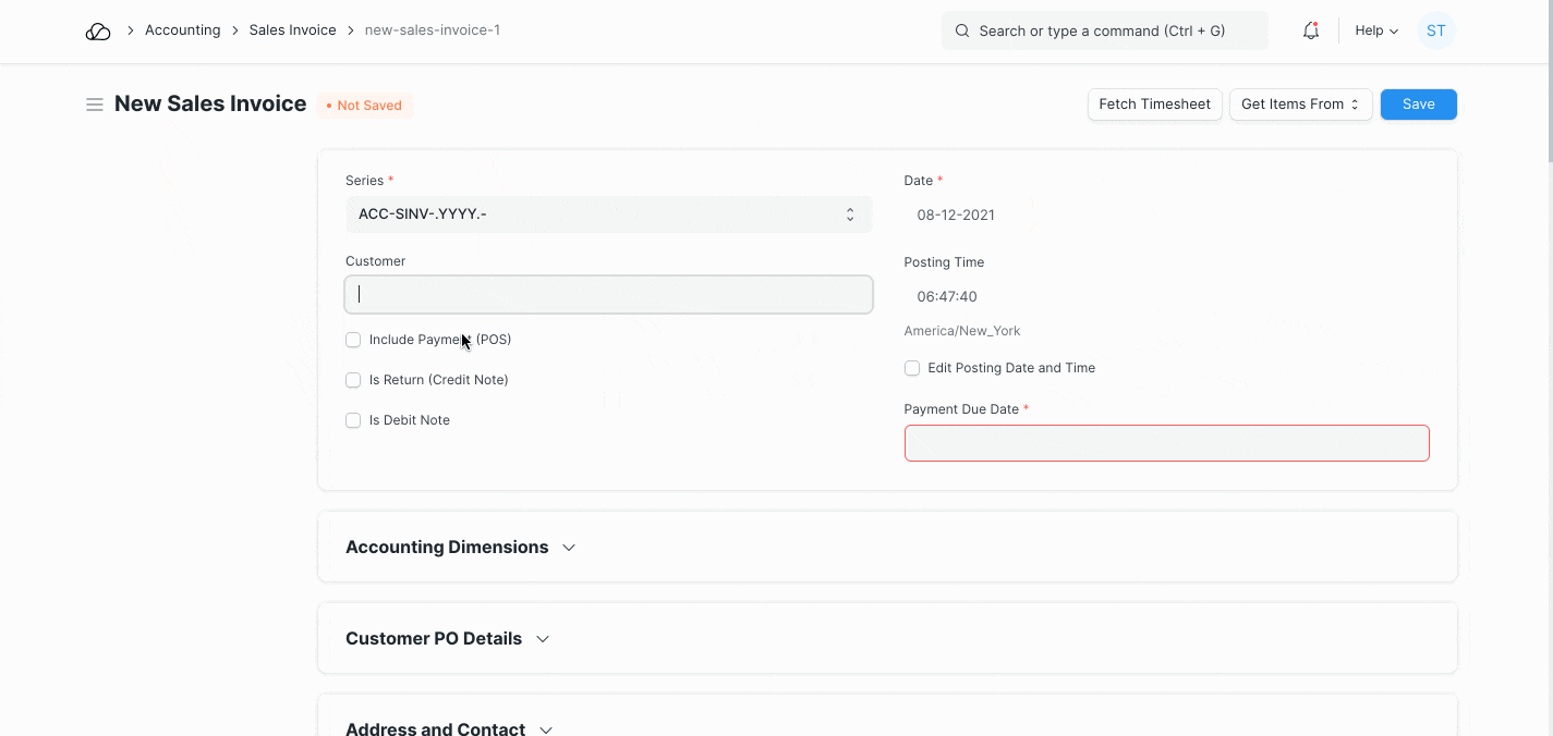 在本例中,我们有一家位于纽约的公司,我们向同一州的客户开具销售发票。