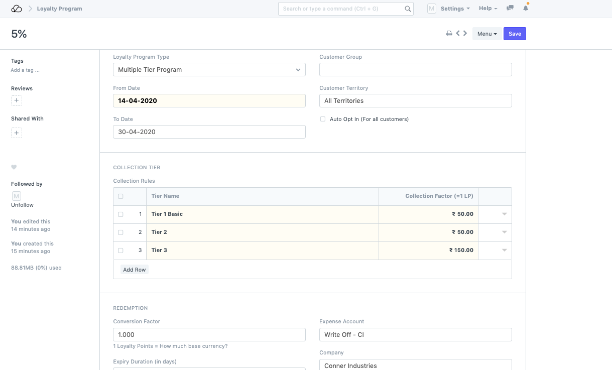 • 设置忠诚度计划后,您可以创建客户并将忠诚度计划与其链接。