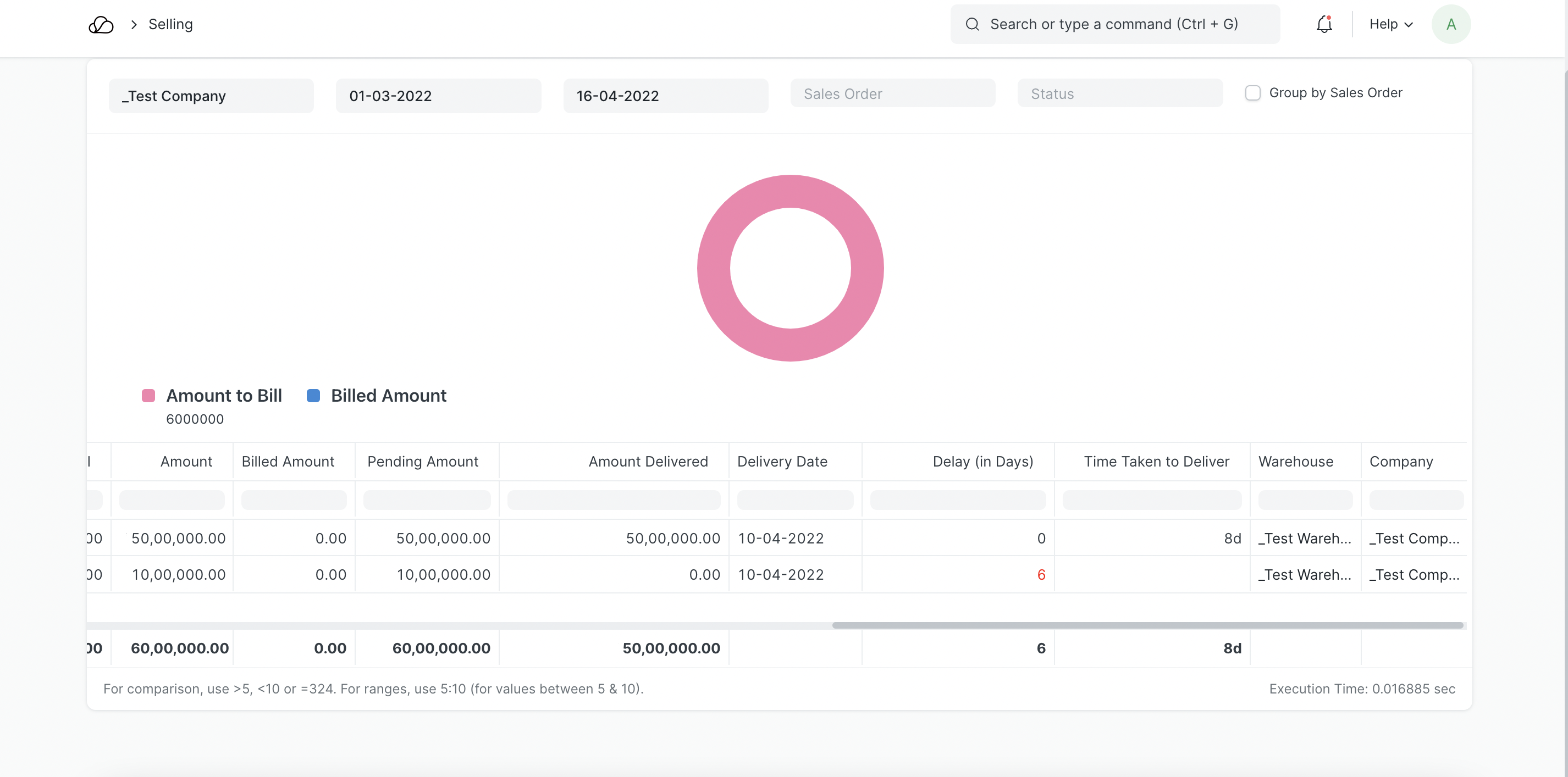 此报告提供所有活动销售订单的当前计费和交货状态。可以使用过滤器窗口应用公司、日期范围和 SO 状态。