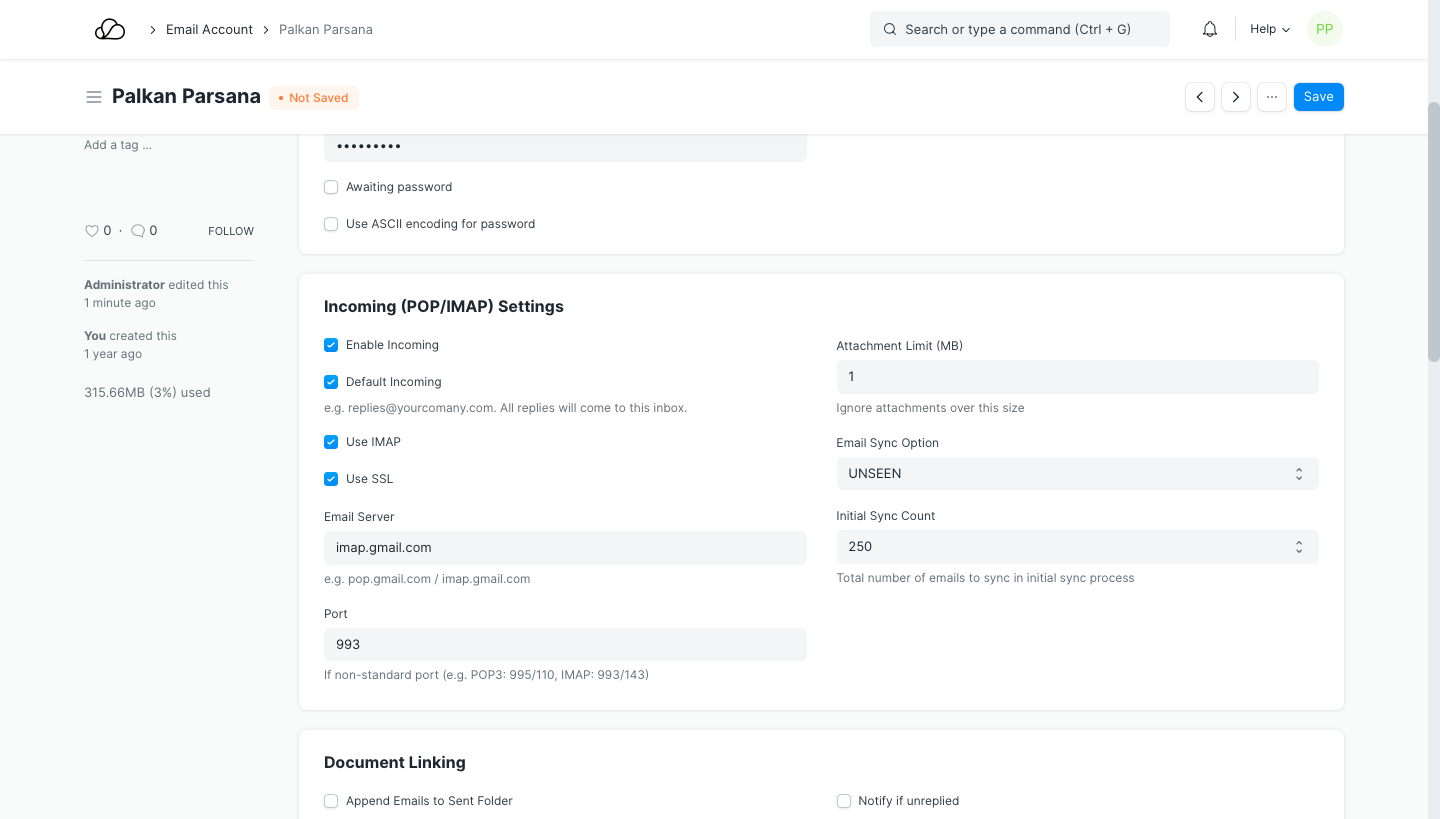 您必须在“电子邮件帐户”文档类型中为所需的电子邮件地址创建电子邮件地址记录,例如“abc@test.com”。