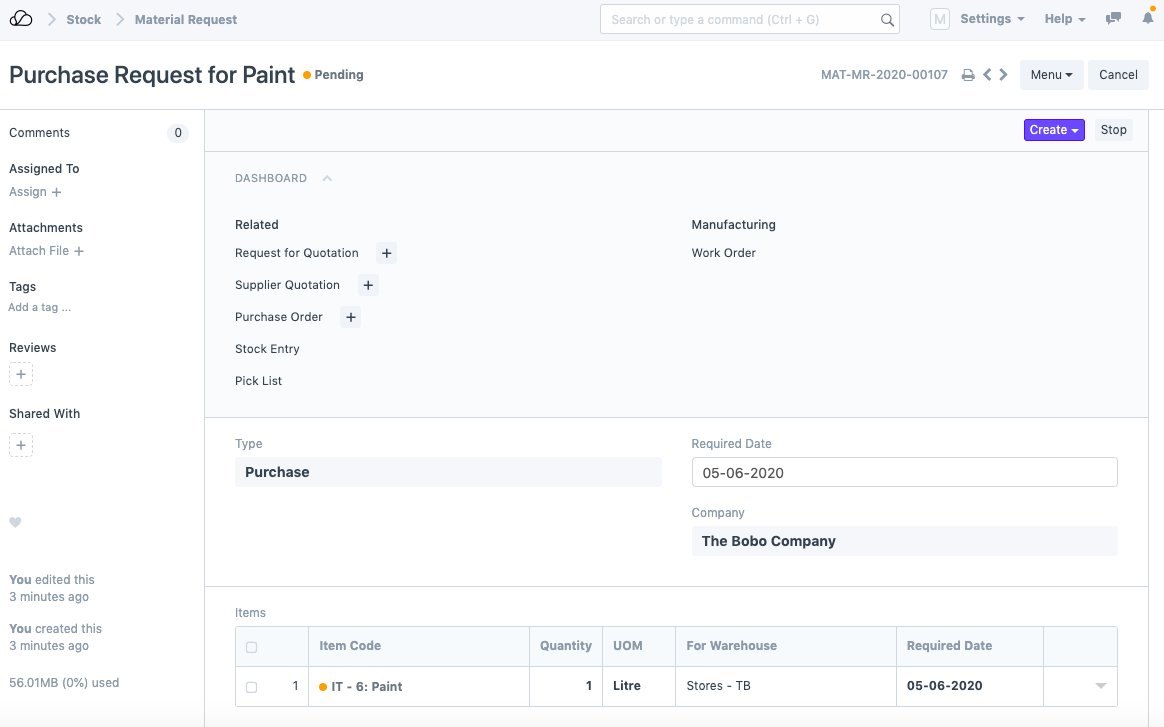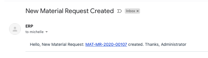 1. 现在创建新的材料请求时,由于上述设置的通知,将收到以下电子邮件。