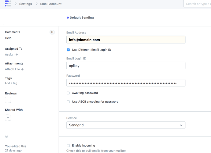 现在保存此信息,您已在 OneOfficeERP 中成功配置 SendGrid SMTP 电子邮件。