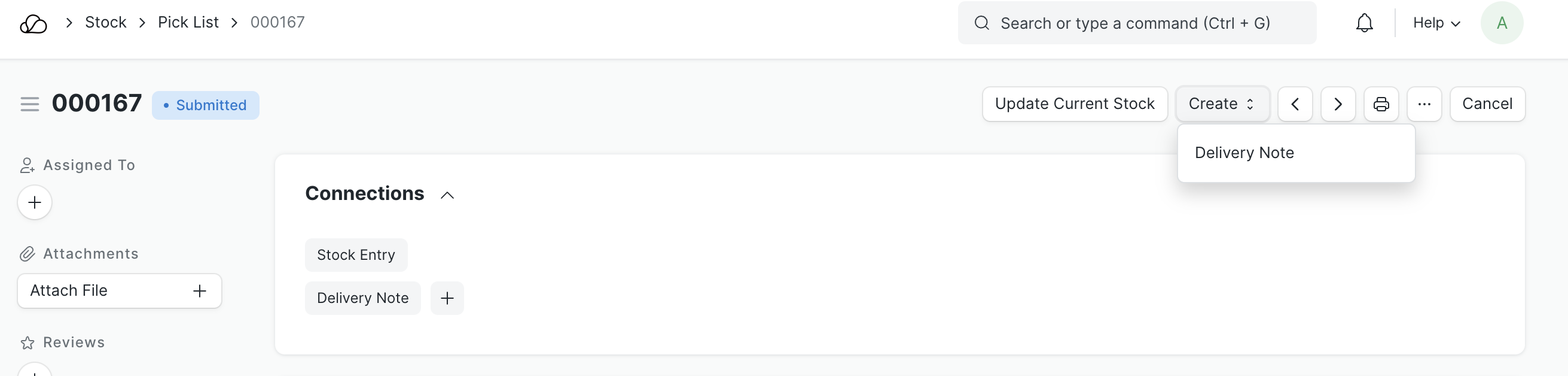提交交货单后,将为每个项目创建一个库存分类帐条目并更新库存。更新销售订单中的待处理数量(如果适用)。